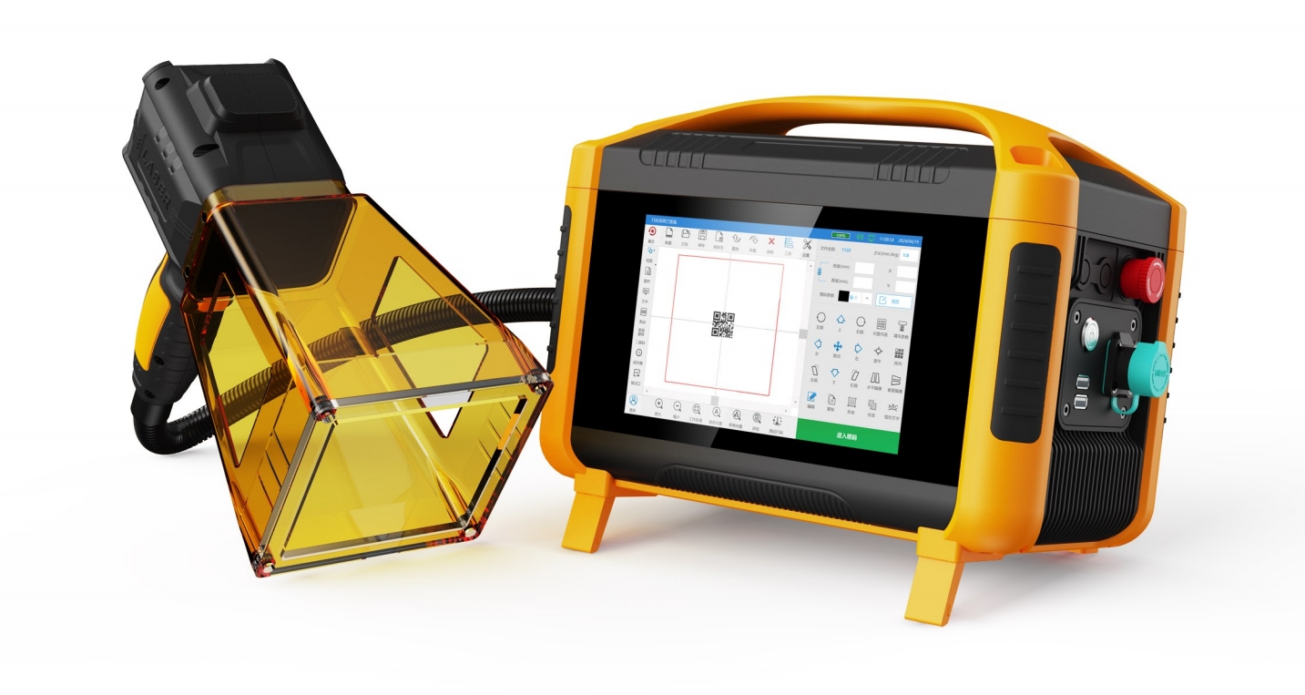 手持式光纖激光打標機適用于在大型工件上打標,可以手持激光頭貼近工件進行操作。解決了大型工件,重零件,無規則機械配件,整機設備等不能實現激光噴碼打標的難題。 采用高度集成化設計,機身小巧輕便,整機僅重6.8KG,8寸大屏一鍵觸發,既有插電作業,也有電池款作業,任你選擇。